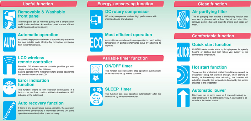 Ductless mini split AC system(heat pump) Compressor Toshiba(rotary type DC INVERTER) Toshiba(rotary type DC INVERTER) Panasonic(rotary type infrared Remote control with indoor unit dynamic digital LED display Digital Multifunction infrared Remote control with indoor unit dynamic ... Fetch Full Source
